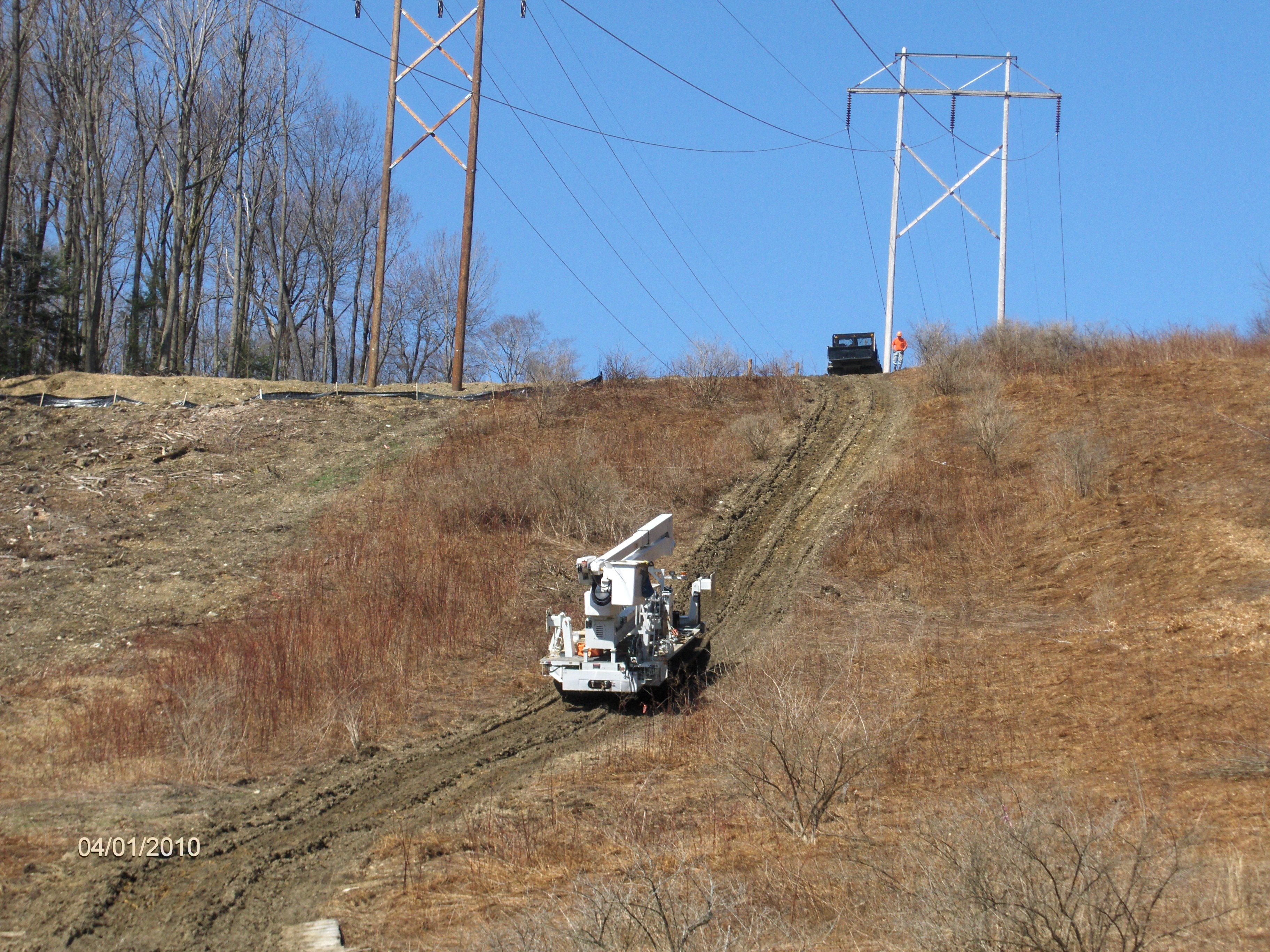 Construction on the new power lines along the Finger Lakes Trail on Rowland Ridge
