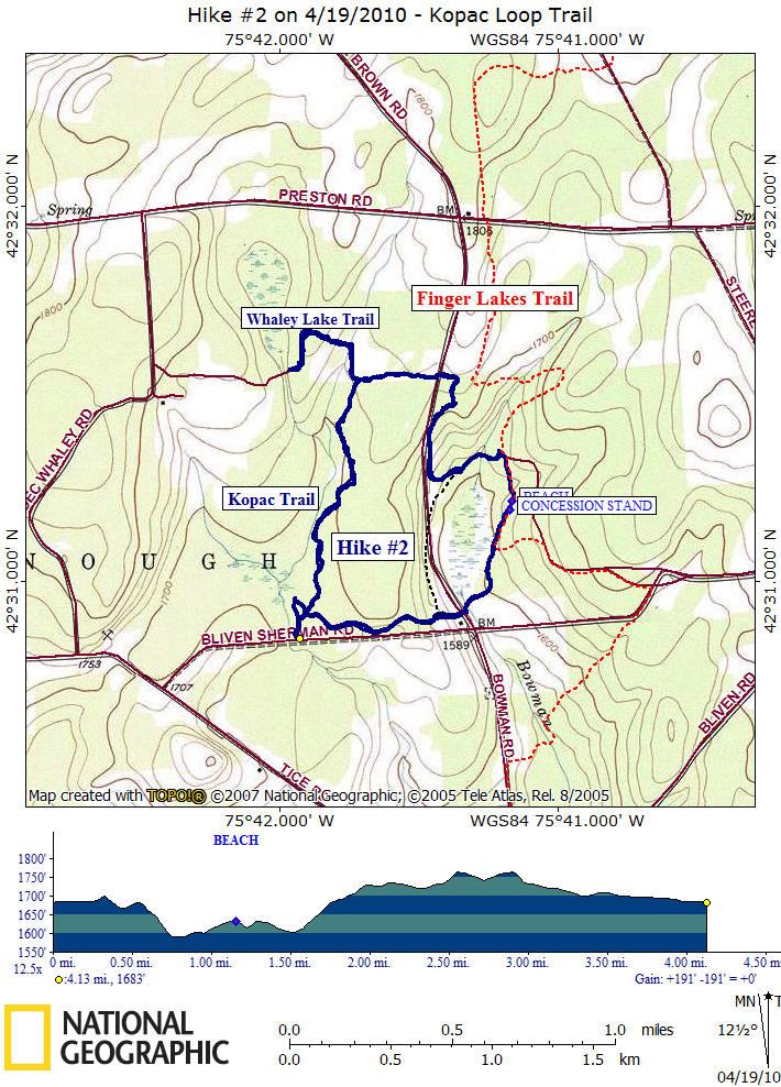 Hike #2 on 4/19/2010 --> Kopac Pond Trail, Kopac Trail & Whaley Lake Trail