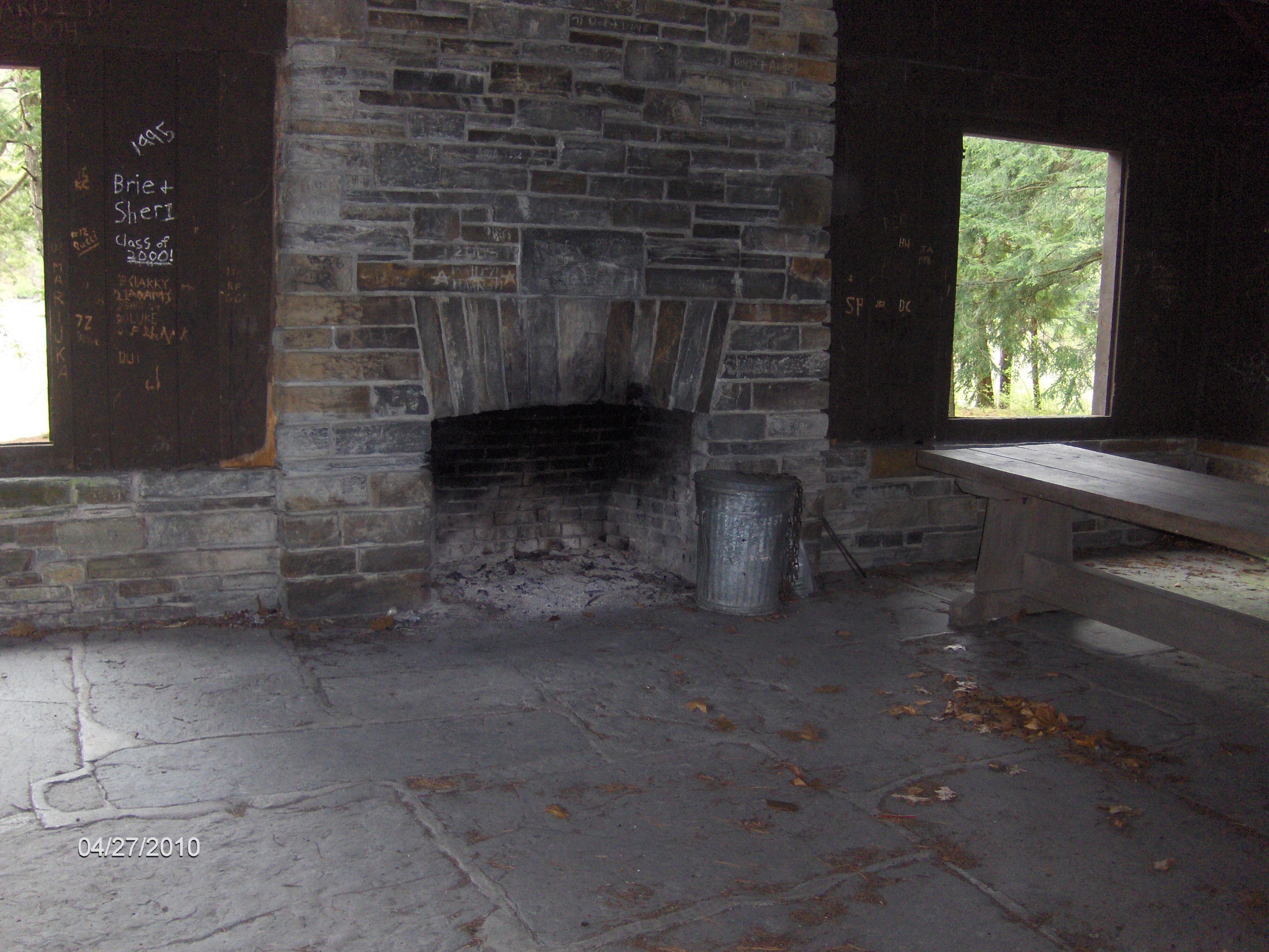 The trail continues to descend as you make your way along Glen Creek towards a beautiful old large park pavilion with a huge fireplace and large tables at 0.65 miles. This scenic spot is made even better by its location next to Punch Bowl Lake (see panorama above). Most visitors to Watkins Glen State Park never see this scenic place or even know its here. The main FLT/NCT skirts the pavilion, however we went over to explore this majestic place and walked along the edge of the lake until we hooked back up with the main trail again. After we took a pleasant short break on one of the large tables.