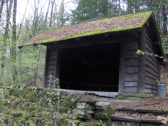 At 1.6 miles we reached the stone steps access trail that leads to the main Gorge Trail. For those who want to join the throngs of visitors can turn left here for the gorge trail. We continued on and soon passed an old lean to shelter on our right. There is no camping allowed along the trail in the state park. Thru hikers must camp in the campground, however I believe most get lodging in the village and enjoy a "zero day".