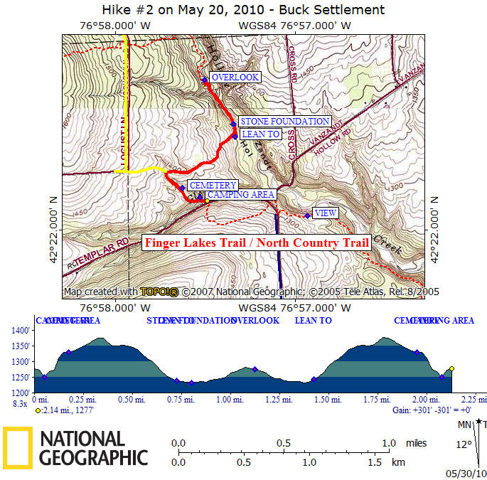 Below find information on our two hikes on May 20, 2010. Our first hike was exploring Excelsior Glen along the Finger Lakes Trail / North Country Trail. Our second hike was exploring the Buck Settlement area of Sugar Hill State Forest along the Finger Lakes Trail / North Country Trail. Both hikes are located in the Watkins Glen area.