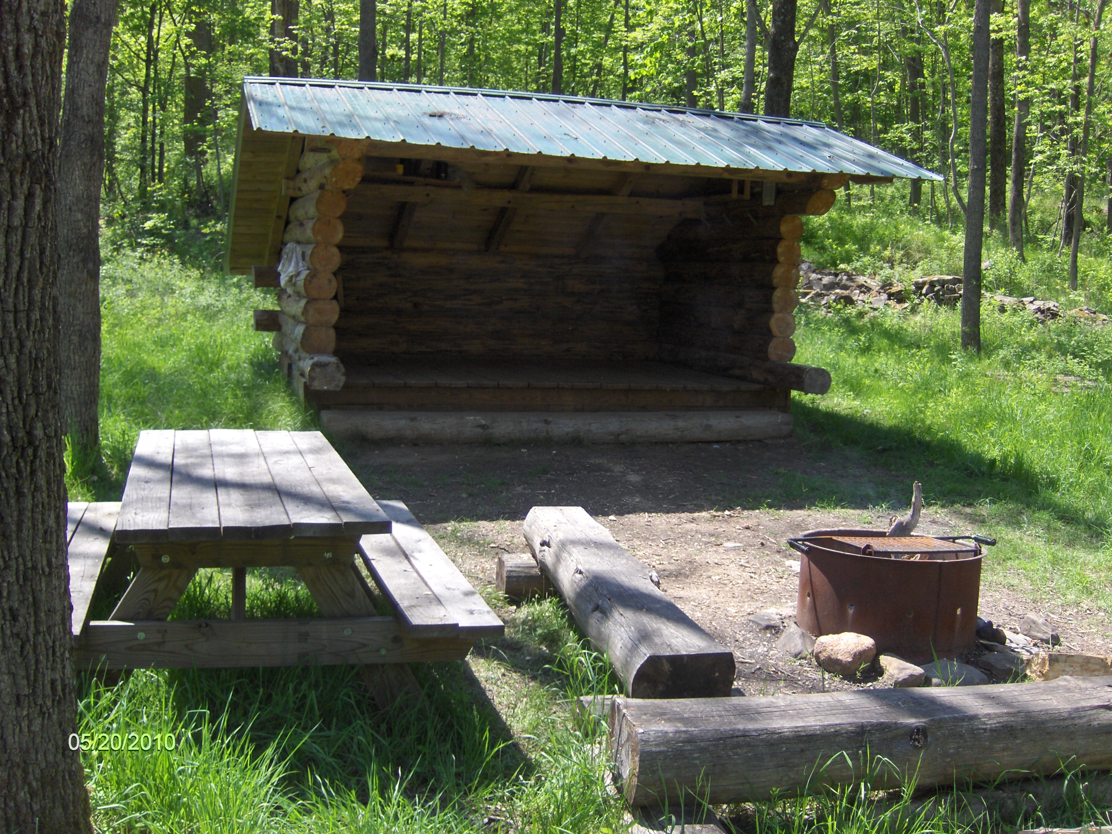 Soon the trail veers off the old road and reenters the state forest. The trail passes through a real nice section of forest before beginning its descent toward Buck Settlement Lean To. As you descend there will be an old stone wall along the trail on your right. Soon you'll see the lean to in the distance as the trail begins to level off. A signed side trail on your right takes you to the lean to, reaching it at 0.7 miles.