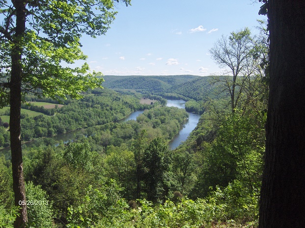 An easy 0.4 mile loop trail leads visitors to two scenic vistas at the Tidioute Overlook. The first overlook features Courson Island and the Allegheny River Islands Wilderness, while the second overlook features a view of part of the town of Tidioute. There is a picnic area at the parking area. The parking area for this popular destination is off Bimber Run Road (SR 3005) about 1.2 miles from US 62 near the small town of Tidioute along the Allegheny River.