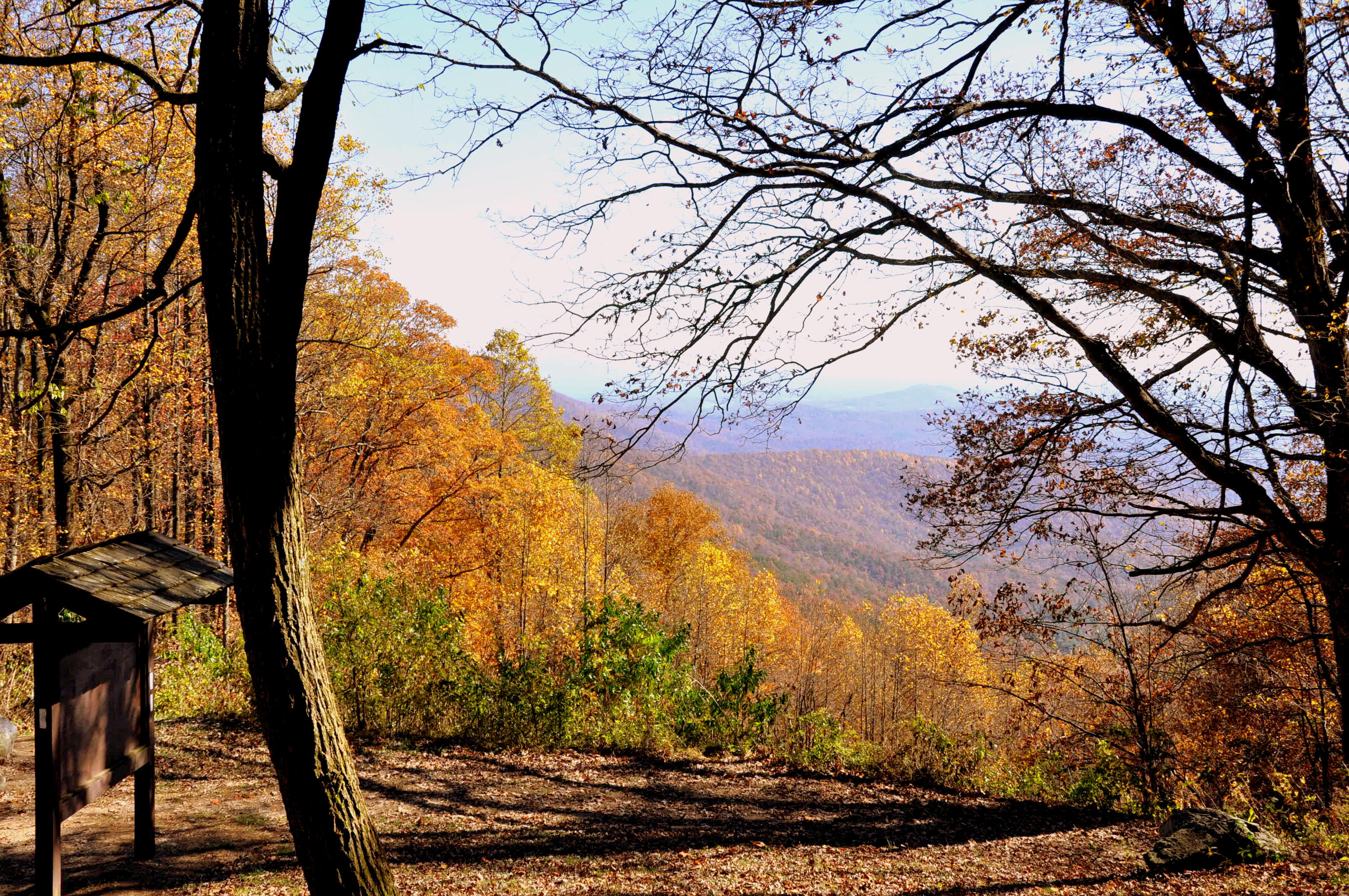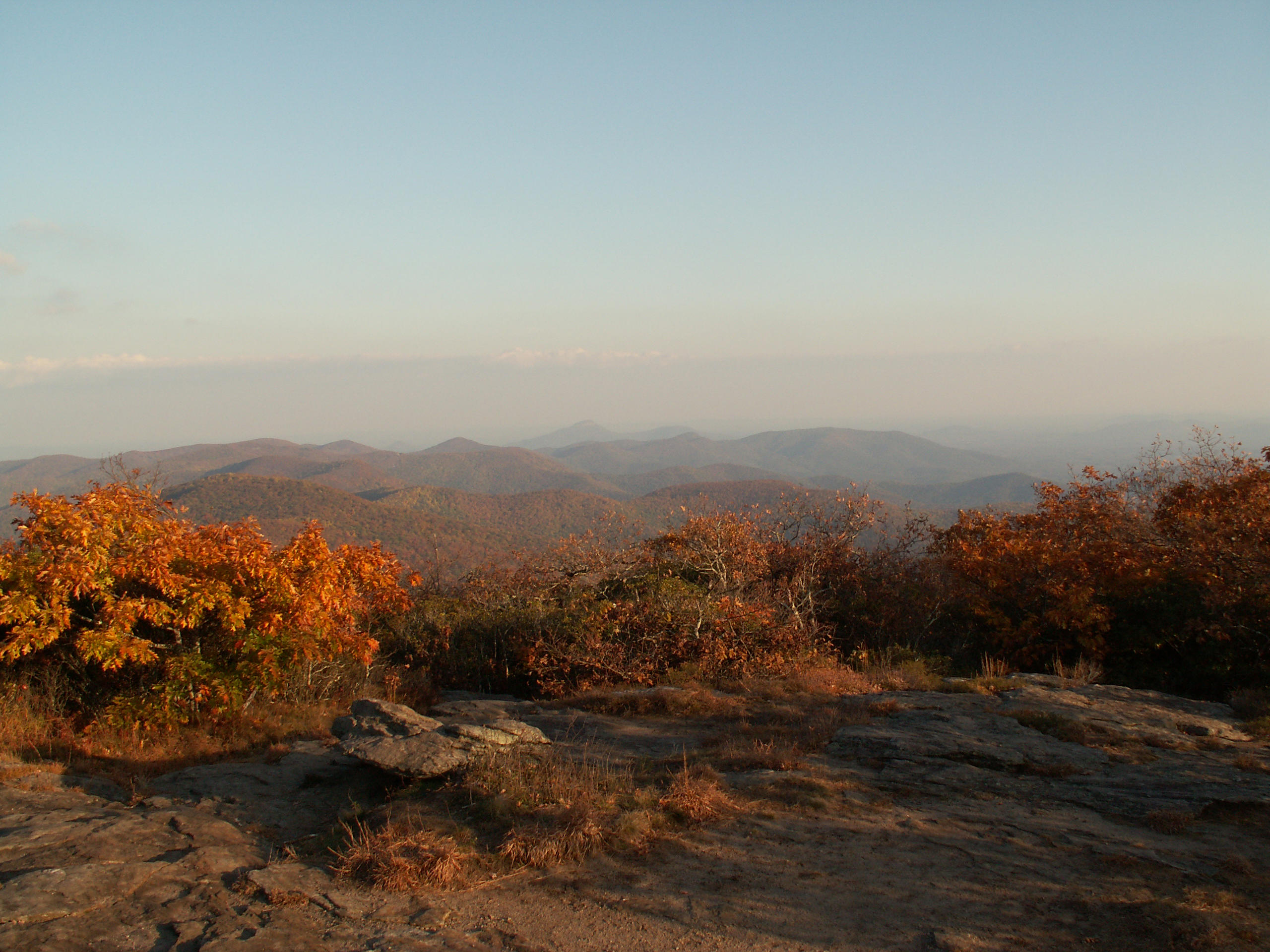 You'll find the large parking areas at Woody Gap as well as Neel Gap crowded on nice weekends, especially in the fall. Both are starting points for two great day hikes along the Appalachian Trail. The first is a short 1.2 mile hike to Big Cedar Mountain from Woody Gap. The second is a longer 2.4 mile hike with an elevation gain of 1400 feet to the highest point along the AT in Georgia on Blood Mountain. According to folk lore, a battle between the Creek and Cherokee Indian Nations on the slopes of the mountain, left so many dead and wounded that the ground ran red with blood, giving Blood Mountain its name. Blood Mountain is the most visited spot along the Appalachian Trail south of Clingmans Dome and the 40,000 visitors per year has taken its toll on the area as well as the shelter located near the summit.