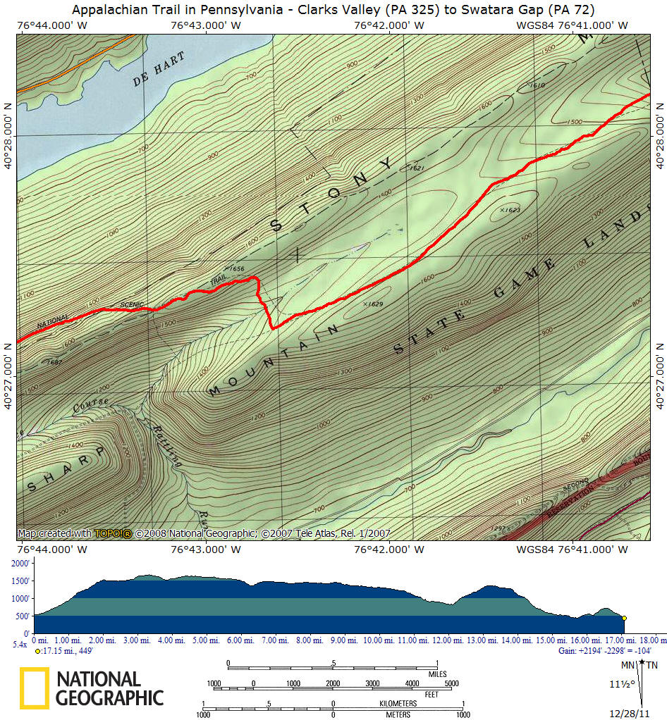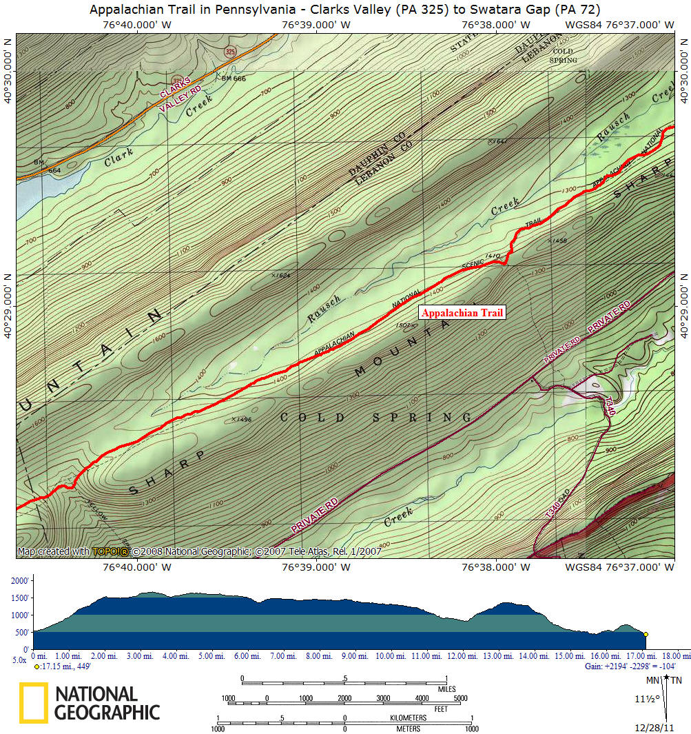 This 17.2 mile section of the Appalachian Trail in Pennsylvania takes northbound hikers from the Clarks Valley to Swatara Gap. The main features of this section of the AT are the remains of the historic mining villages of Rausch Gap and Yellow Springs.