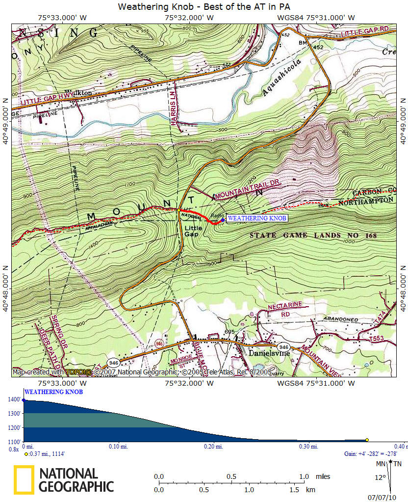 DIRECTIONS - This hike starts where the Appalachia Trail crosses Blue Mountain Rd at Little Gap. Follow Blue Mountain Rd north from Danielsville, PA. There is a small pull off for AT parking just off the road. The GPS coordinates for the parking area are N40 48.366 W75 32.089 for those who have a GPS devise in their vehicle.