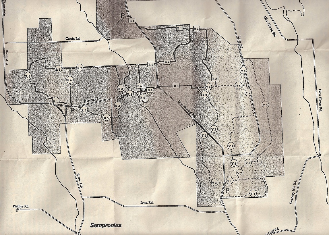 Directions: This state forest is located off NY 41A near Sempronius, NY. See the trail guide below for locations of parking areas.