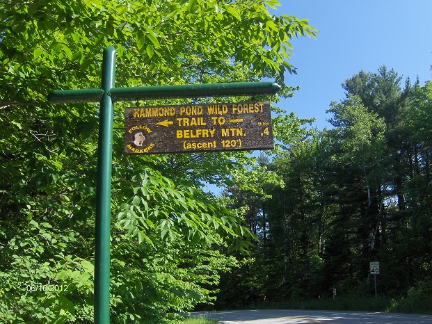 DEC sign along County Route 70 for Belfry Mountain Trail