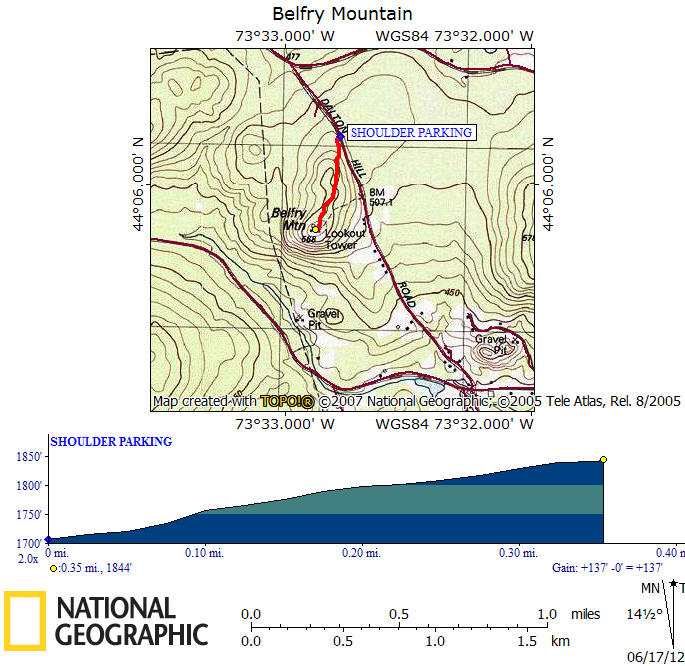 The GPS coordinates for the start of the trail is N44 06.139 W73 32.780 for those with a GPS device to help find the trailhead. If your in this area, take the time to explore this truly large 1840 foot mountain with a fire tower. This fire tower is one of the fire towers needed to complete the ADK Fire Tower Challenge.