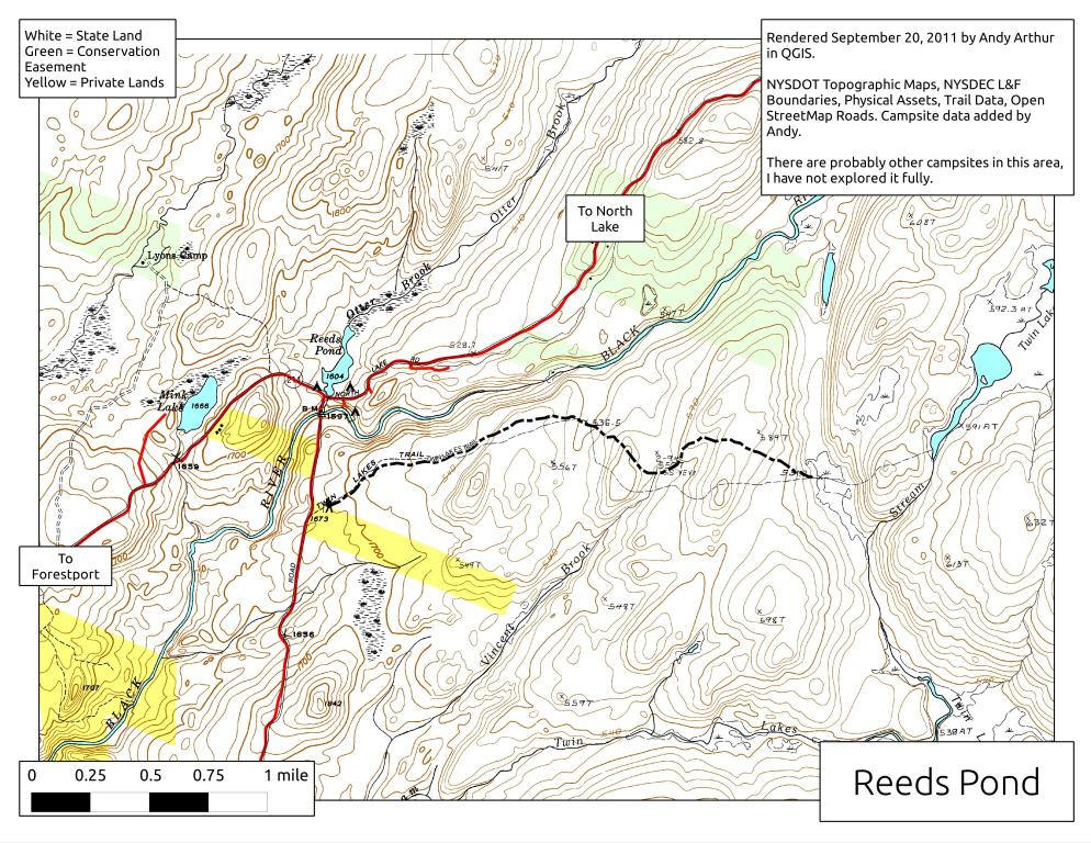 You'll also find numerous roadside campsites in the area. Woodhull Lake Road has a few roadside campsites. There are campsites located along North Lake Road that are on North Lake. There is a really nice campsite on Reeds Pond along North Lake Road. There are maps below of the many trails and some of the roadside campsites in the Black River Wild Forest as well as most of the destinations to explore. A new destination to explore is the Flatrock Mountain Demonstration Forest, located off NY 28 at the large parking area.