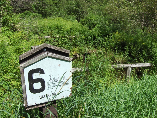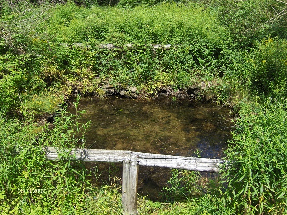 This is a stone water hole developed by the CCC during the 1930's as a storage for easily accessible water in the event of a forest fire. These water holes were dug throughout the state's forests and maintained for fire readiness. To the right of the water hole is a small stream that eventually flows into the Chenango River, several miles from this spot.