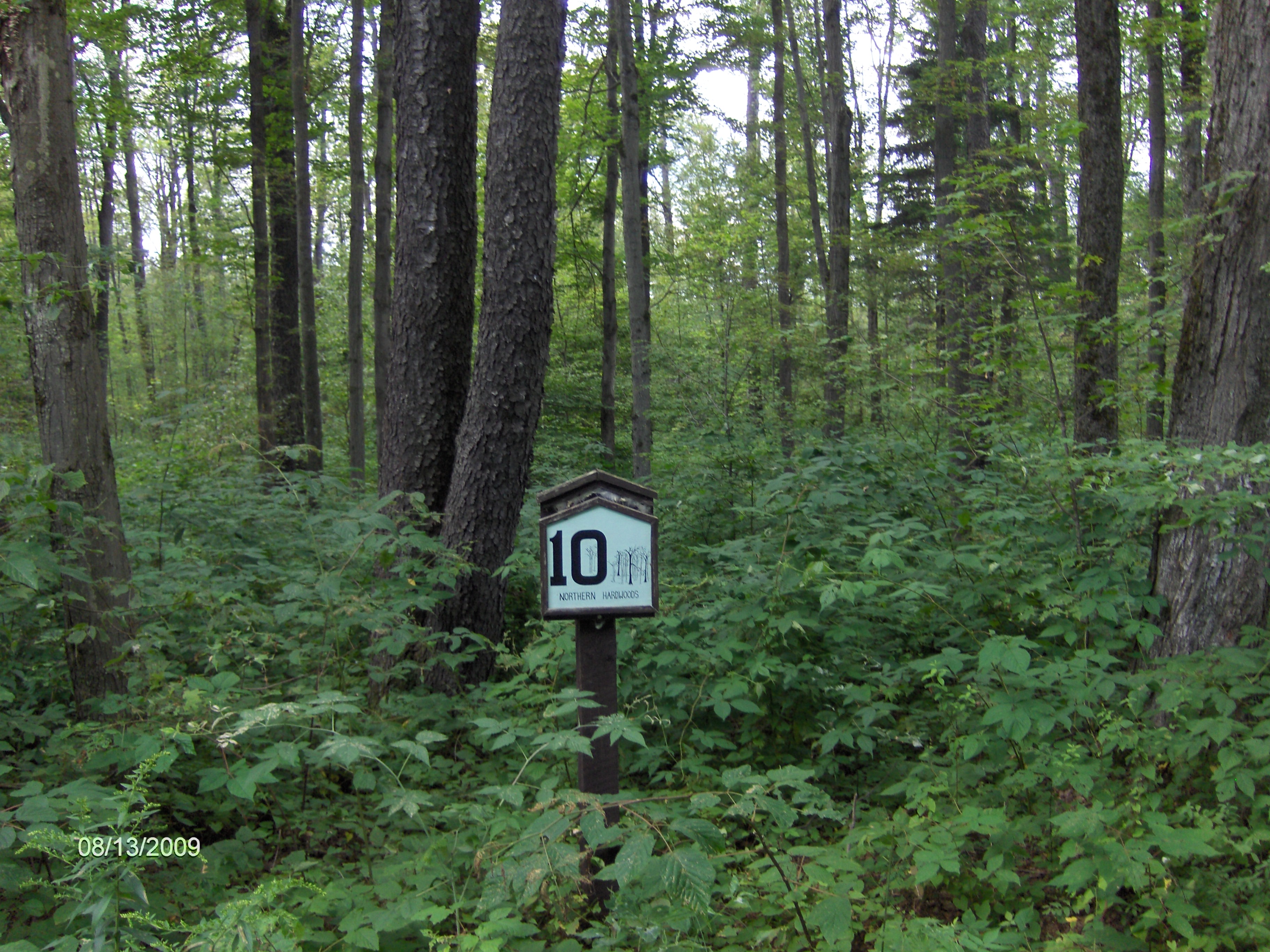 Directly behind the sign for Stop #10 is a 17 acre stand of northern hardwoods typical of central New York State. This stand was thinned for firewood in 1982 and again in 2004.