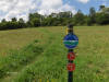 0.45 464 feet Trail junction. Turn right and pass by yellow gate. Ascend. Trail will enter open field and begin to veer to the left.