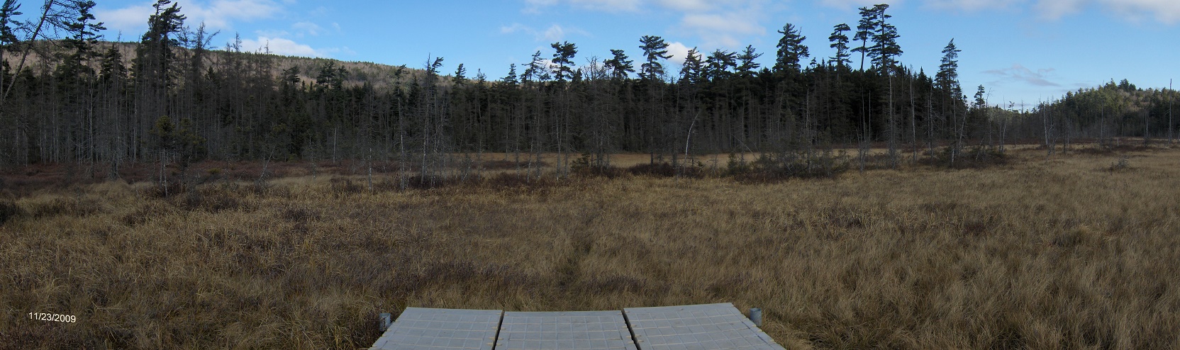 Tamaracks, pitcher plants and many other bog plants abound, plus you'll see many boreal birds. All this is visible from a plastic boardwalk floating on the bog as you enter from a short nature trail that takes you down to the bog. The plastic boardwalk was used since it takes less maintenance and won't leak toxins as treated wood could.