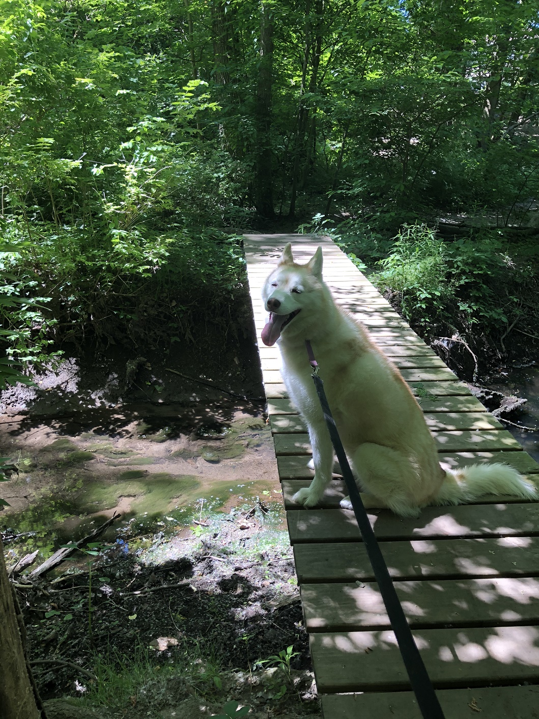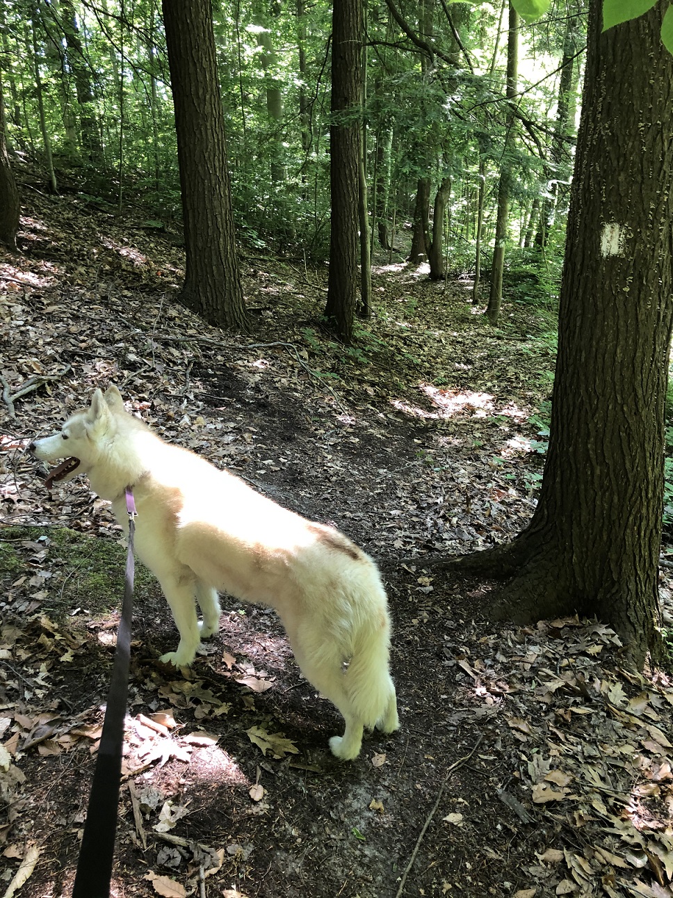 There is a short, pleasant loop trail located within Friendship Woods Nature Preserve. The loop is marked with white painted blazes on the trees. The lower part of the loop features a walk near the scenic stream, while the upper part of the loop wanders along the ridge of an esker with views down toward a wetland behind the homes along Woodside Lane. We saw deer on our last visit to the preserve (June 2020).
