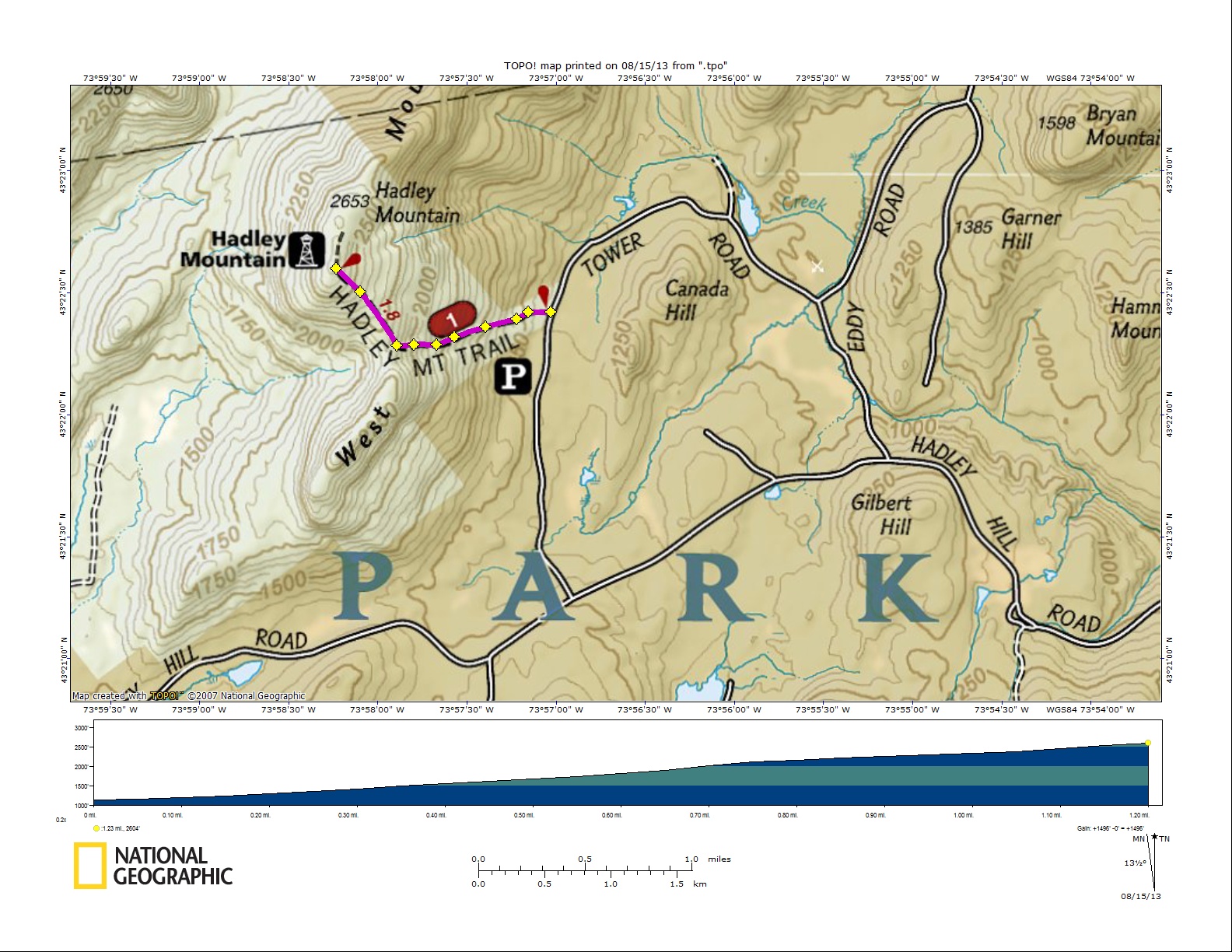 Trailhead: From Saratoga, take NY 9N going north. When you reach the village of Lake Luzerne, turn left at first light onto East River Drive. Turn left onto Bridge Street. Turn right onto Stony Creek Rd (CR1). After 3 miles, turn left onto Hadley Hill Rd. Continue for 4 miles. Turn right onto Tower Rd (gravel road). The parking area is on the left after 1.5 miles.