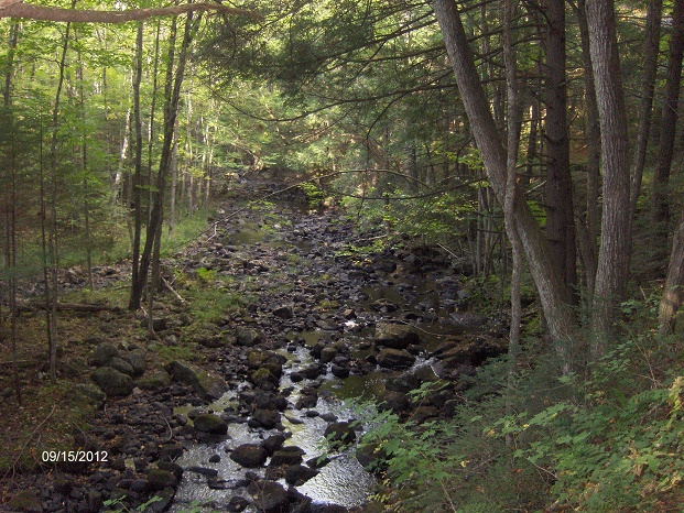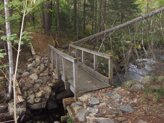 At 0.1 miles the trail crosses Berrymill Brook on a nice footbridge. After crossing the bridge you reach a trail register. The trail is easy to follow as you walk along the old road. At 0.7 miles reach a Y junction with no signs. The trail to Hammond Pond goes left as the Black Brook Trail goes right up hill. The future North Country Trail will also go right and follow the Black Brook Trail toward a proposed trail that will be constructed in the future.
