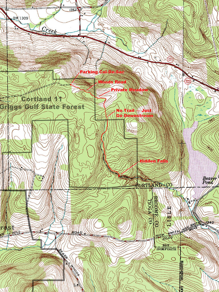 Hiking in Cortland County Griggs Gulf State Forest Hidden Falls aka Hunt Falls