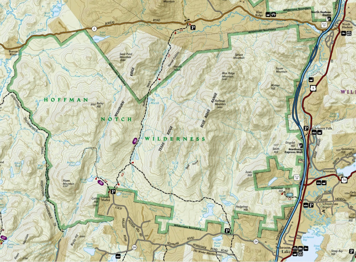 Look below for some destinations and a few of maps of the Hoffman Notch Wilderness.