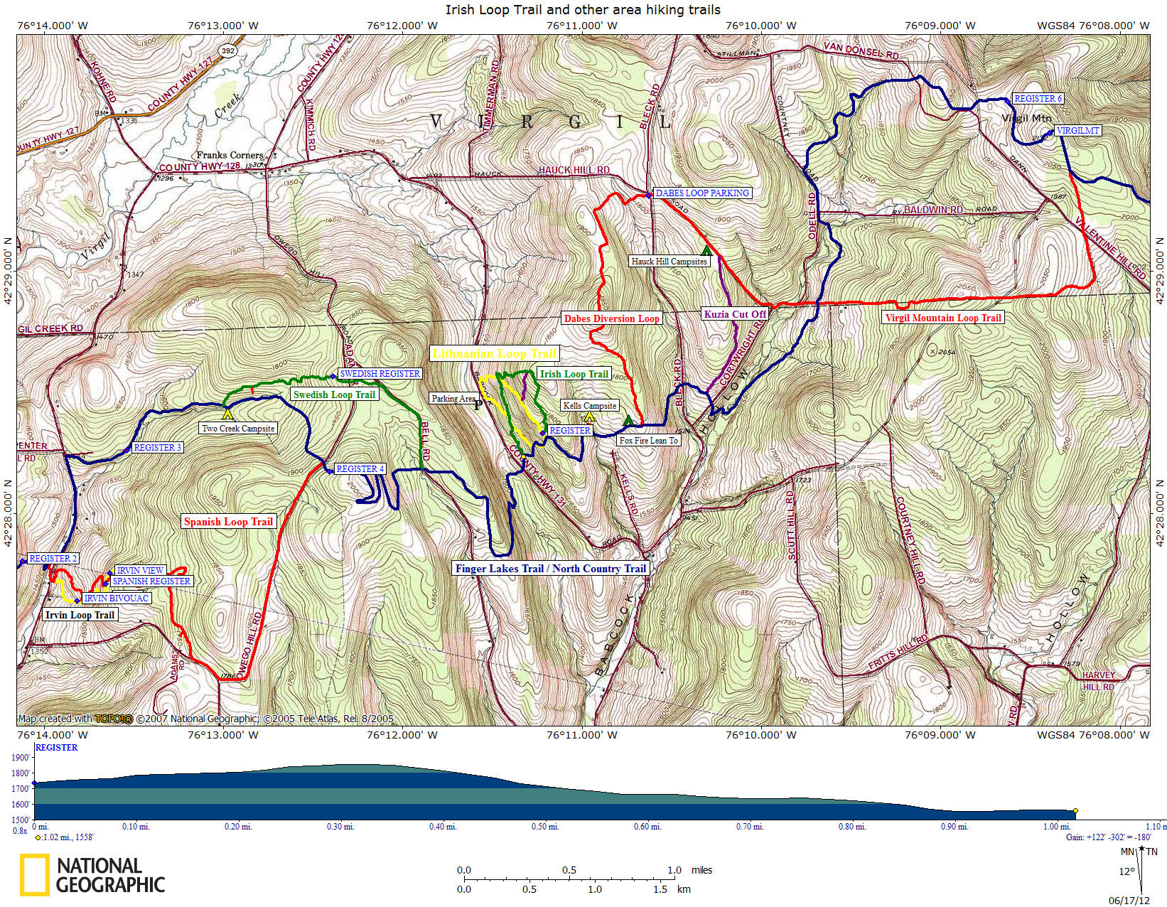 The area also offers hikers that are looking for loop hikes, the Irvin Loop Trail, Dabes Diversion Loop, Virgil Mountain Loop and Finger Lakes Trail/North Country Trail, all located in and around Kennedy State Forest near Dryden, NY.