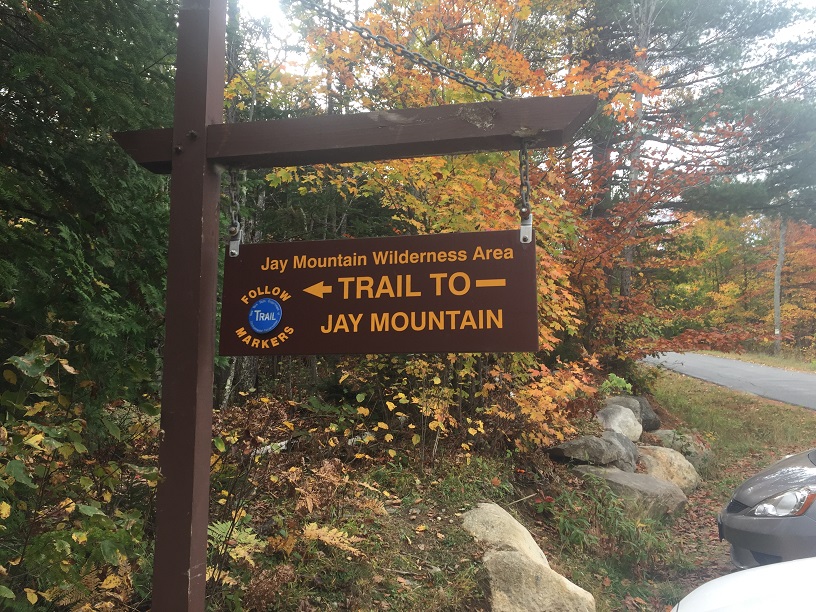 The Jay Mountain Trail starts at a new trailhead at the intersection of Jay Mountain Road and Upland Meadows Road in the town of Jay. The new trailhead is located on State Lands about 100 yards downhill from where the old herd path entered the woods and offers parking for about five cars.