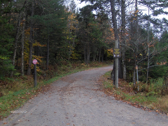 This hike begins at the large DEC parking area off Sagamore Road. The parking area is on the right across from some buildings of the Sagamore Camp. From the parking area, walk back to Sagamore Road and turn right following the dirt road. At 0.2 miles reach the end of Sagamore Road at the gate of the private Camp Kill Kare (do not enter) and the gate to Mohegan Lake Road. Turn right, past the gate and follow Mohegan Lake Road. It is for bikes and hikers to travel this restricted road. There is no parking at this intersection.