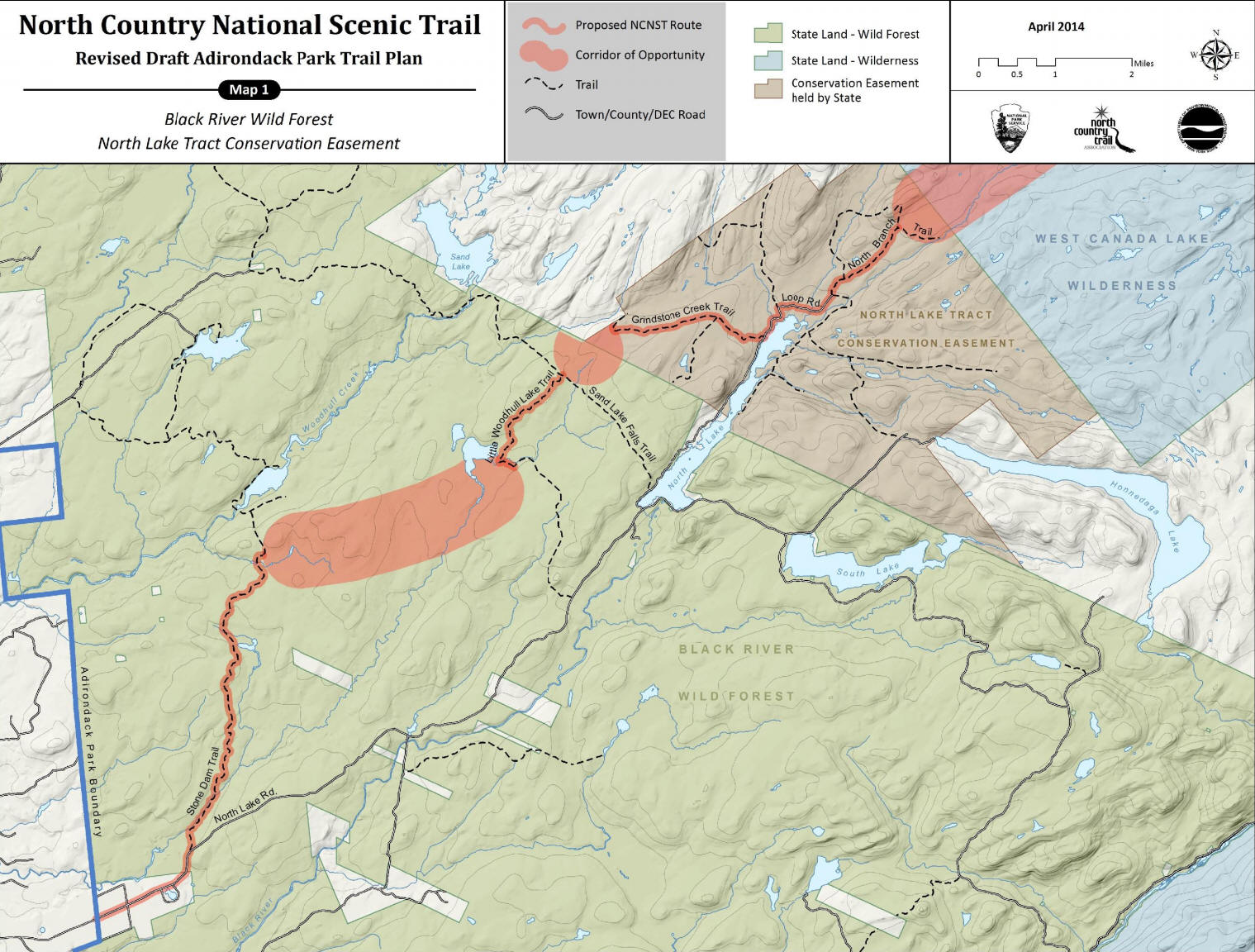 NOTE: This information is based from the information gathered from the DEC plan available at the DEC website. The info below is for what will be the future North Country Trail in the Adirondacks.