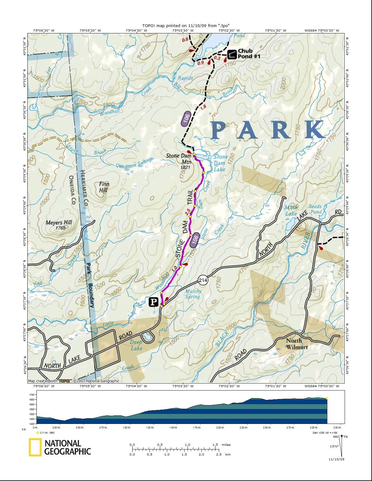 Mile Elevation Trail Description - follow yellow DEC discs 0.0 1467 feet From the North Lake Road trailhead, head north along old woods road. Shoulder parking. Trail register.