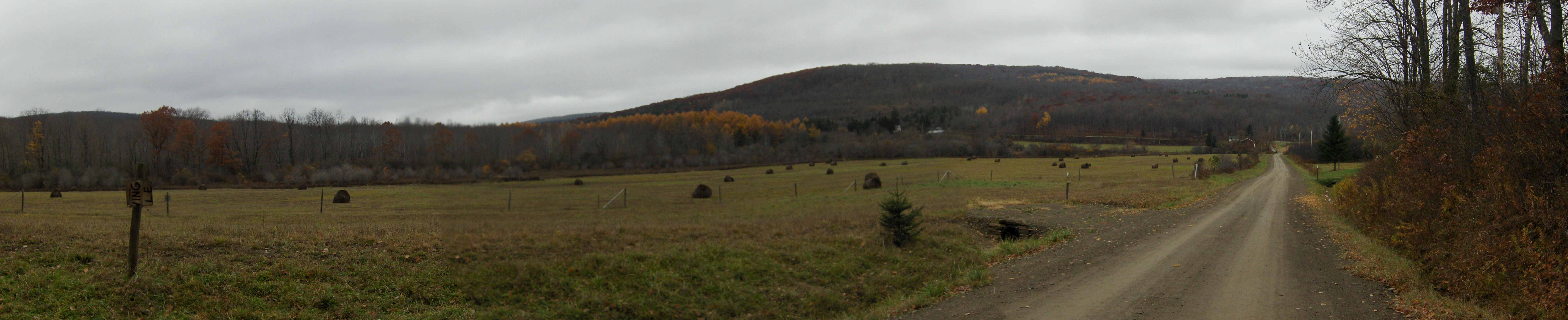 The North Country Trail enters the 3513 acre Bully Hill State Forest off Bush Road (see panorama above) just prior to the seasonal road sign, north of County Route 32. Bully Hill State Forest was the site of many work projects carried out by the Civilian Conservation Corps or CCC in the 1930's. CCC projects included the construction of roads and the planting of thousands of pine and spruce trees in the open areas on this state land.
