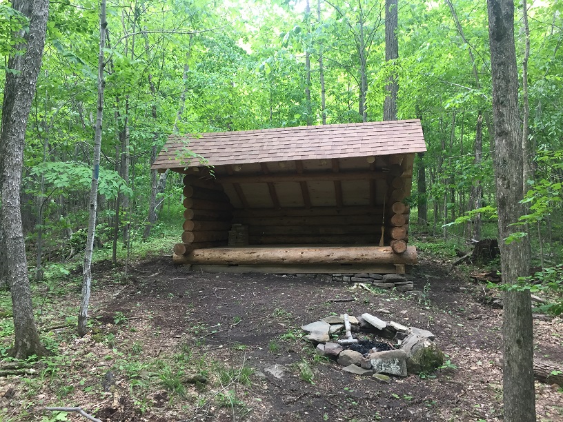 0.6 1811 feet Bully Hill Lean To (built 2017) with outhouse on the right, prior to crossing stream.