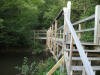 4.1 1675 ft Junction ahead of blue blazed Cobb Trail just prior to bridge over Devereaux Brook. Soon cross active railroad tracks.