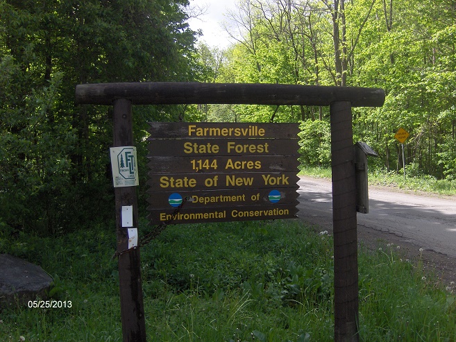 This short 2.75 mile section of the North Country Trail is completely within the 1144 acre Farmersville State Forest. This stretch of the NCT coincides with the white blazed Finger Lakes Trail.