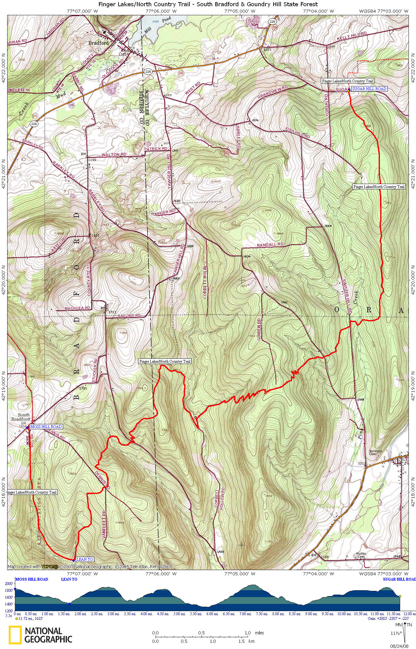 Mile Elevation Description 0.0 1848 feet Moss Hill Rd. Follow road and enter South Bradford State Forest. Parking.