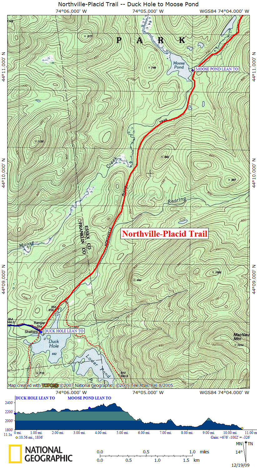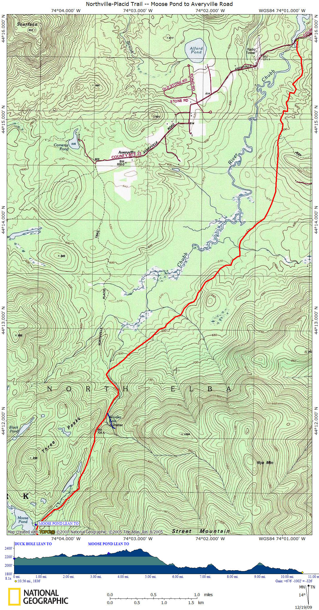 Mile Elevation Description (Duck Hole to Averyville Road) 0.0 2162 ft Duck Hole. Junction of Bradley Pond Trail. Dam is to the right. Two lean to shelters.