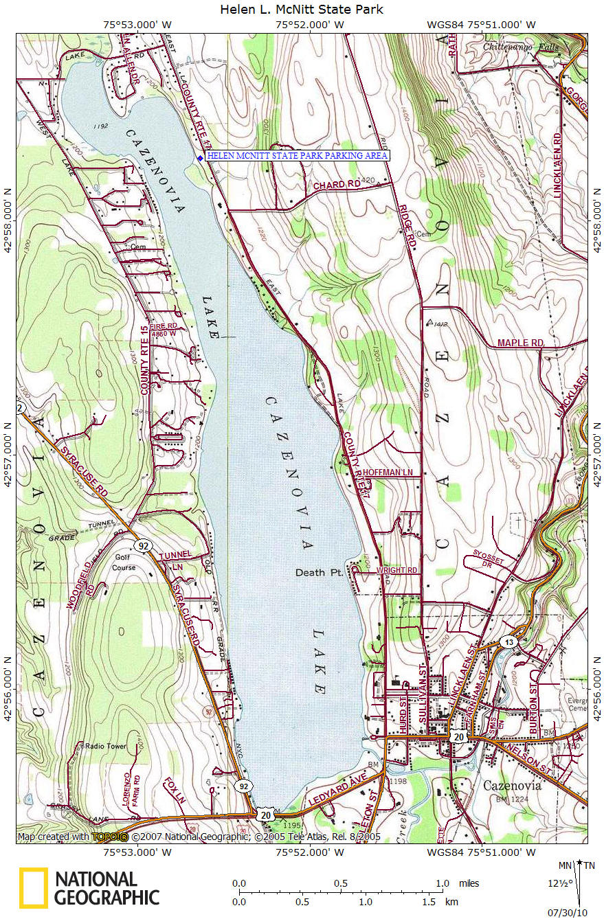 In 1999, Helen L. McNitt State Park in Cazenovia was created from a generous gift of 133 acres of prime land, including about 1300 feet of shoreline along Cazenovia Lake. In 2008 a parking area was built off East Lake Road along with a site to launch canoes, kayaks and small portable rowboats. This small parking area also has a port a potty available.