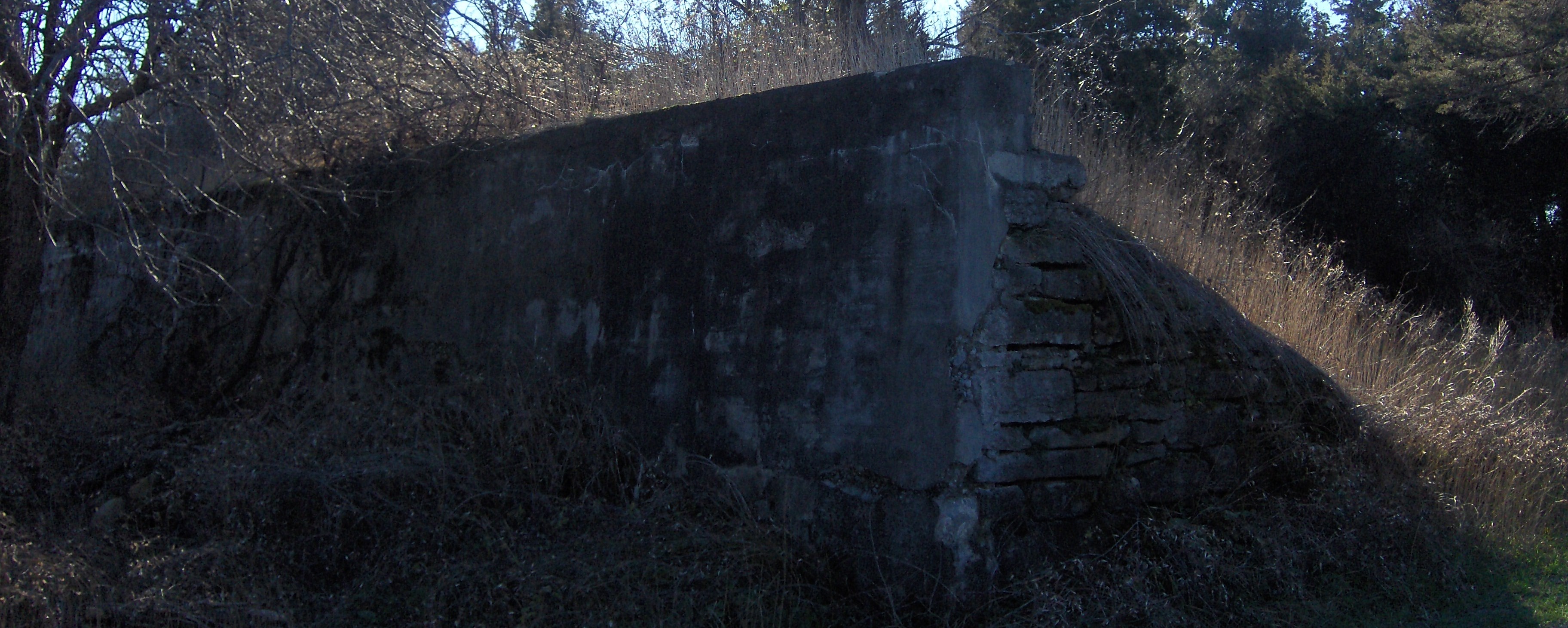 This loop hike turns right onto the Dancing Gyspy Trail (or straight ahead from the picnic area/overlook). There are views of Lake Ontario as you walk along the mowed trail. Be careful as there are, at times, cliffs on your left. At 1.0 miles you'll reach a park service road. Turn left and soon pass by an enormous old artillery wall from World War II when this property was owned by the US Army. A few feet further is an open area on your left with a small concrete pill box on the top of cliffs, about 150 feet above Lake Ontario.
