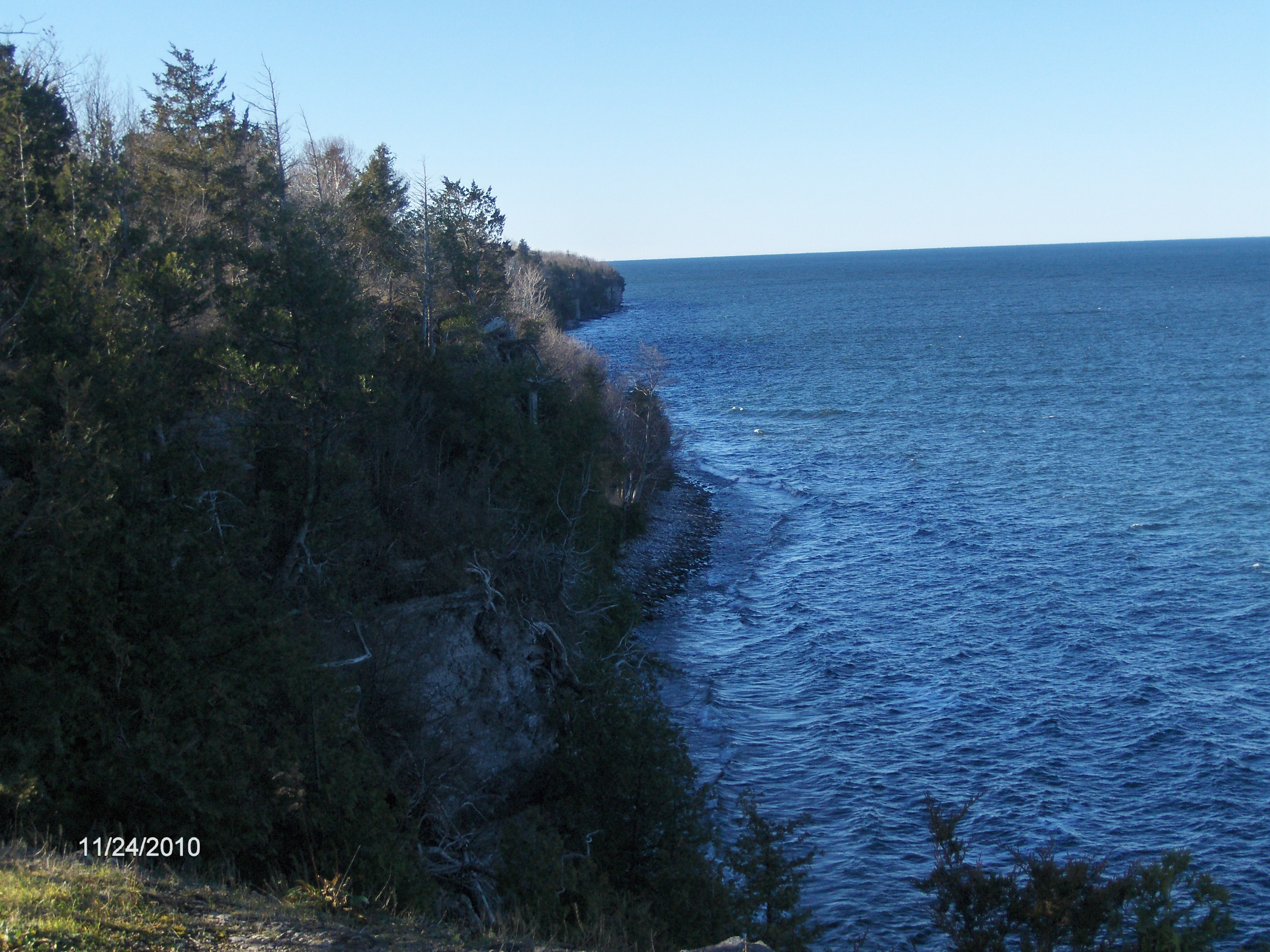 After following the edge of the woods briefly, at 0.3 miles into this hike, the trail turns toward Lake Ontario. At 0.4 miles you'll reach the junction of the Dancing Gypsy Trail. The Snakefoot Trail turns left here and in about 50-75 feet reaches a nice overlook with picnic tables on the right (if you want to check it out). Be careful here as there are cliffs of about 30 feet or so above Lake Ontarios at the picnic area. No grills are located at this picnic area.