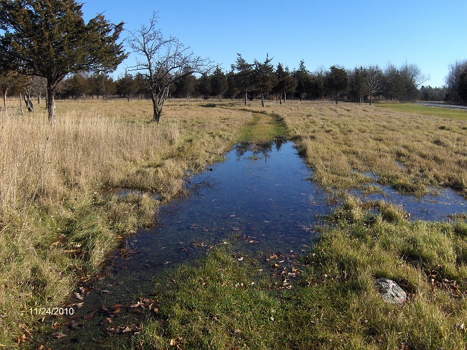 Continuing along the Dancing Gypsy Trail you'll reach a four way junction at 1.9 miles. To the left is an access trail that leads 0.1 miles to Parking Lot A for Robert Wehle State Park. The trail on the right is another unmarked trail. Soon the trail will enter an open area near the main parking area. You should be able to see the entrance road on your left. This last section can be very wet with water as deep as 3 - 5 inches as you head toward the parking area.