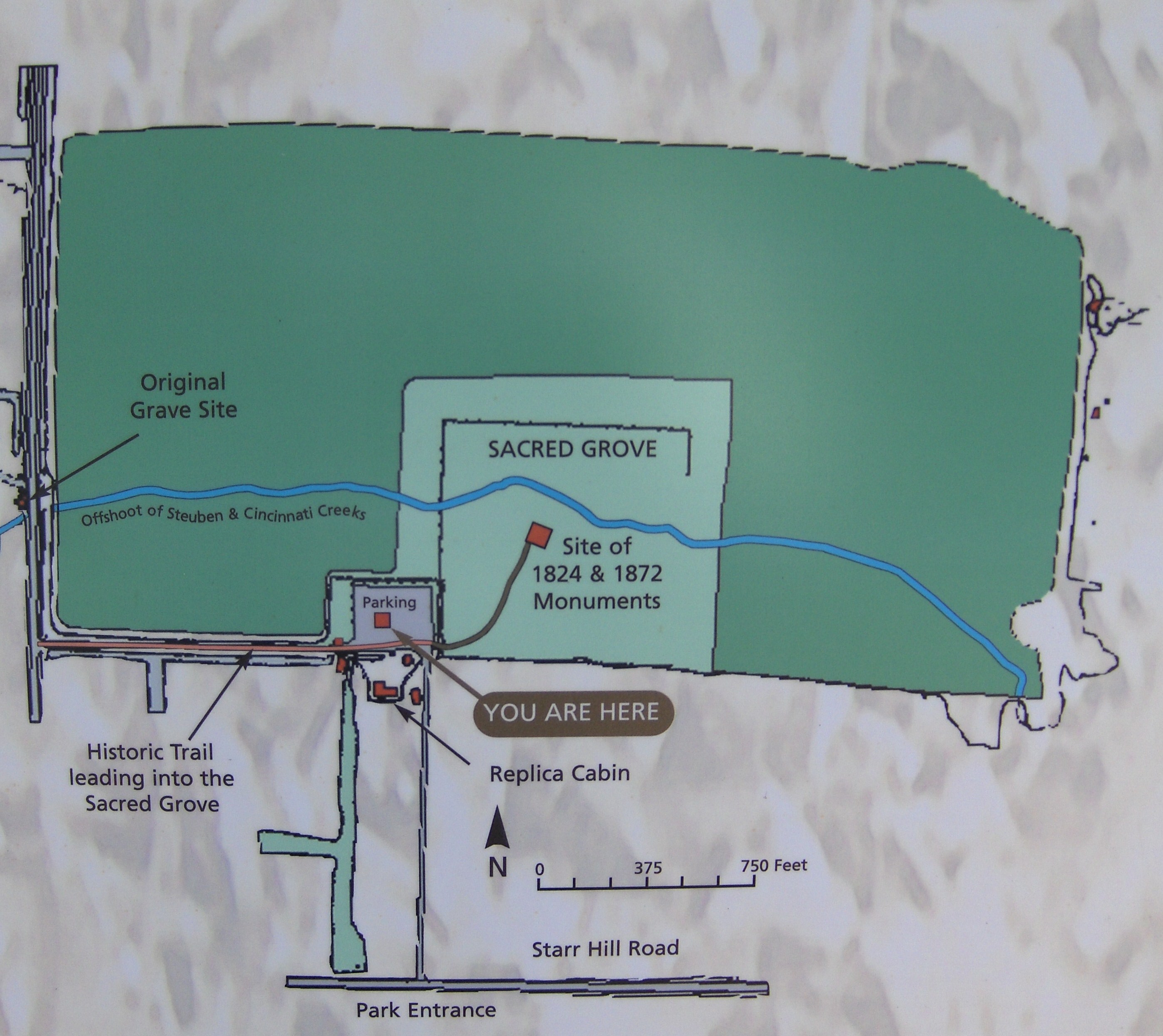 The park area features grills, picnic tables as well as surprising views into the Adirondack foothills. A replica cabin stands in the perfect spot for a perfect view looking into the Adirondacks. A short walk along the Historic Trail (which is now a service road) as well as the short walk into the Sacred Grove to the monument are all worth exploring when visiting. There is no admission fee to enter this park.