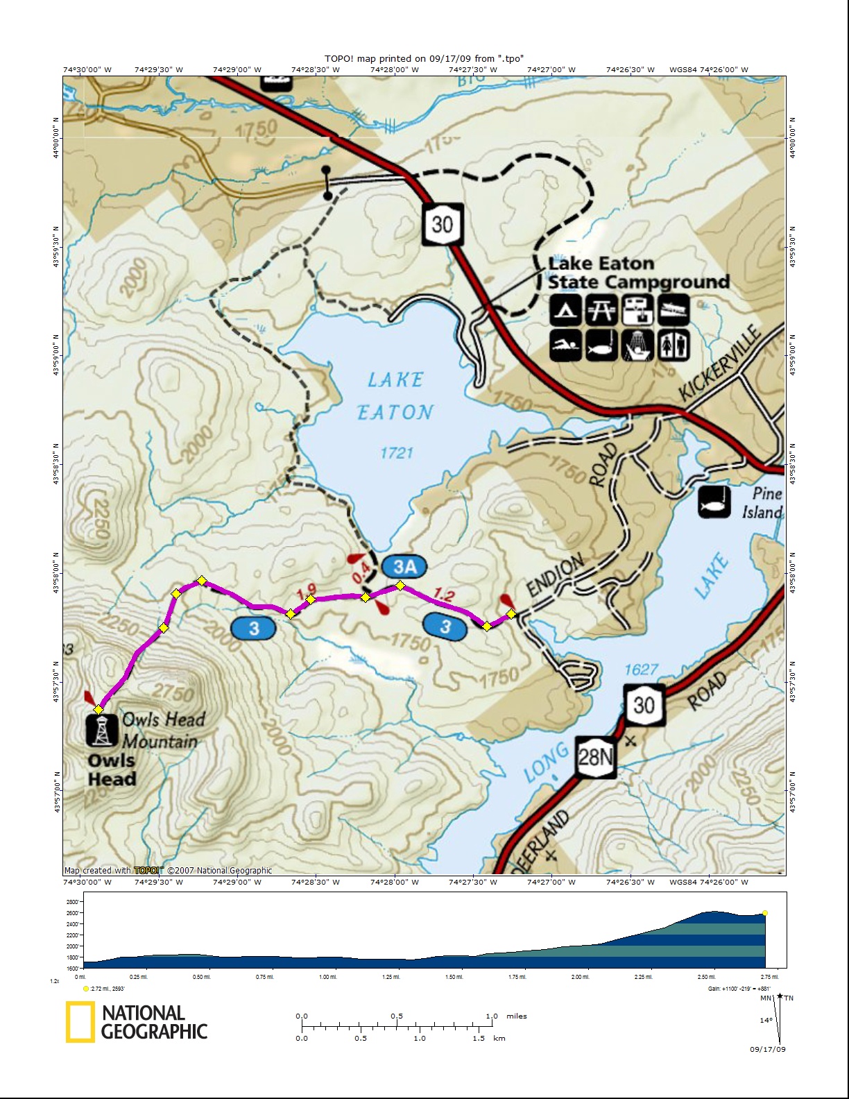 There are numerous Owls Head Mountains in the Adirondacks. This is the one with a fire tower near Long Lake. The elevation of the mountain is 2812 feet and the views are amazing. A well worn trail leads 3.1 miles from Endion Road to the fire tower. There is an elevation gain of 1300 feet. If you travel to the Adirondacks to hike up Blue Mountain and find the lot full or too crowded for your taste, then why not head over and try out Owls Head Mountain. Its a couple of miles more hiking than Blue Mountain but you still get quite a view with a good chance of much fewer people along the way.