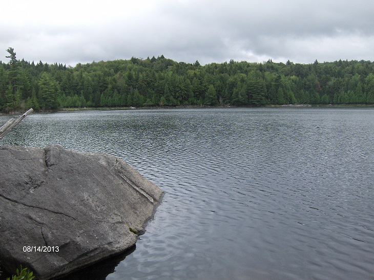 The trail that leads to Rock Pond is located off seasonal dirt Coreys Road in the northwestern section of the High Peaks Wilderness of the Adirondacks. This is a short, pretty easy, 0.5 mile hike to a scenic pond in the High Peaks Wilderness. I do not recall seeing a sign for the trailhead when I hiked this in the summer of 2013. We have been told there is a sign there now. You are following yellow DEC plastic discs on this trail.