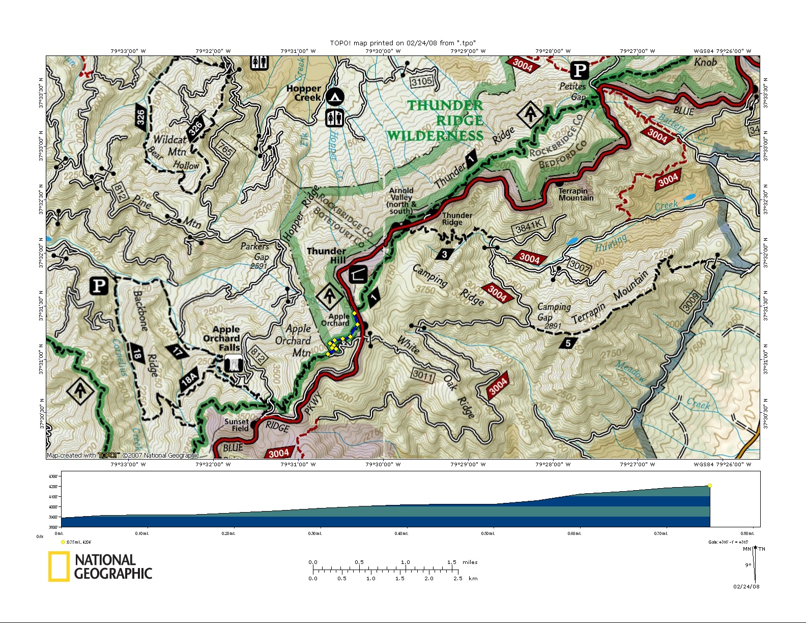 Another option is start from the AT crossing the Parkway at milepost 76.5 (park along the side of the road, making sure your vehicle is off the parkway). This is the easier hike to Apple Orchard Mountain.