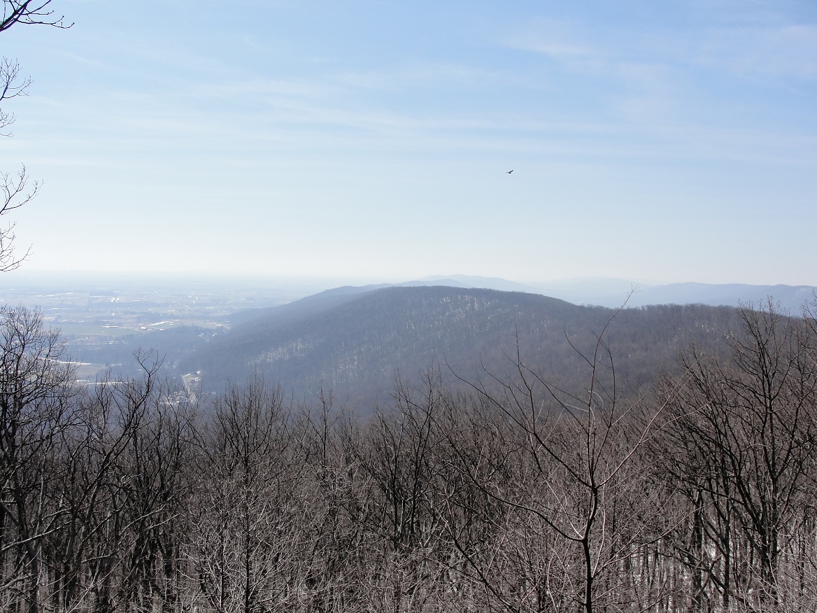 The main trail continues to ascend and at 3.5 miles reach a viewpoint called White Rock Cliffs on Lambs Knoll. At 3.7 miles reach near the summit of 1734 foot Lambs Knoll. An unmarked side trail leads to the communication tower on the summit. The AT now descends quickly.