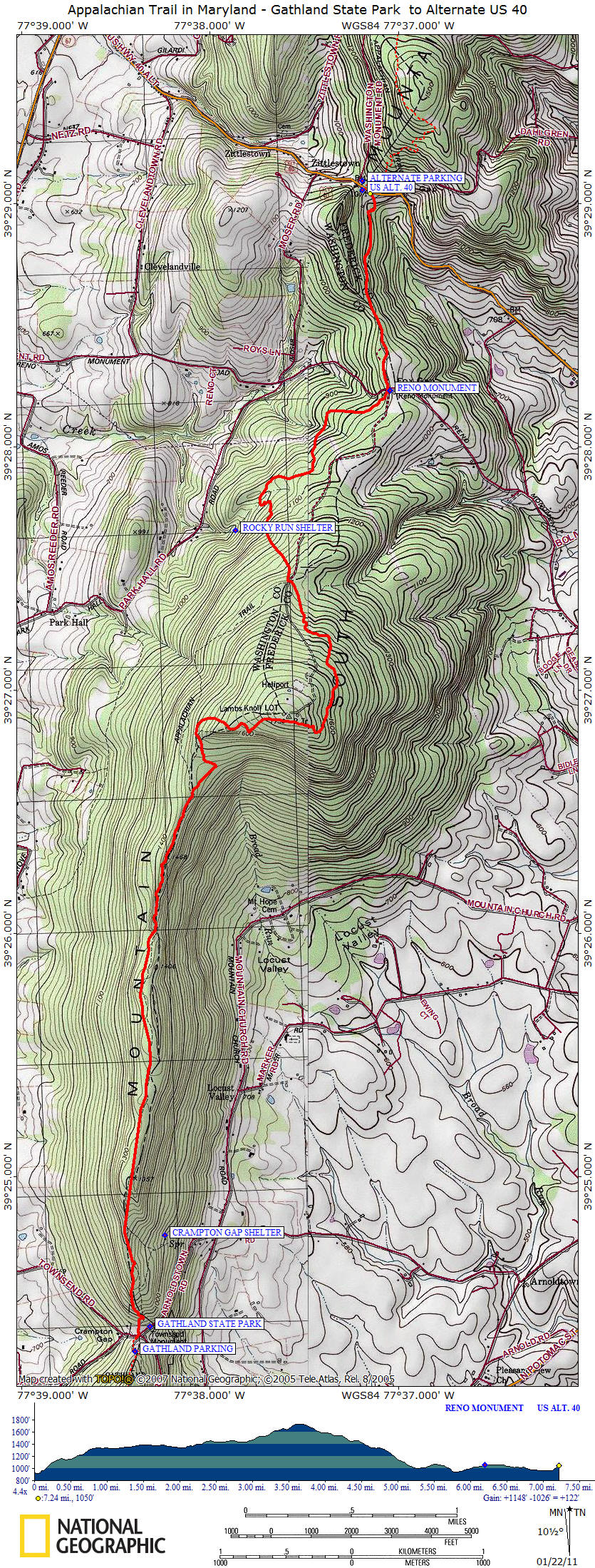 AT in Maryland Gathland State Park to Alternate US 40 White Rock Cliffs on Lambs Knoll