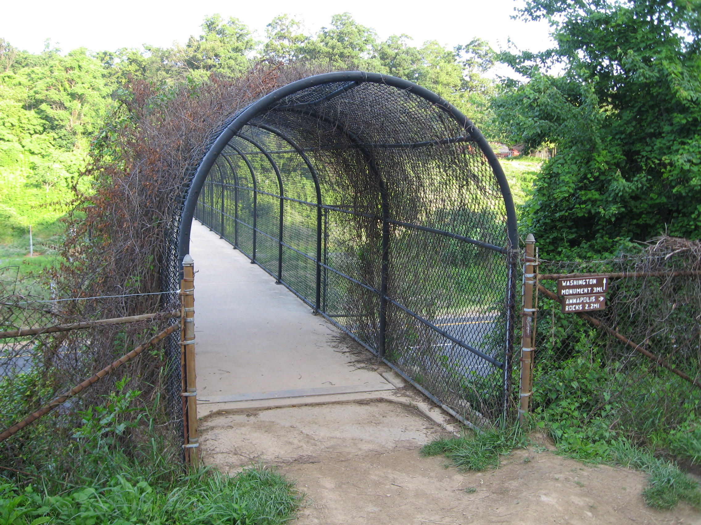 The trail crosses Boonsboro Mountain Road along a tree lined easement between two homes at 4.8 miles. The trail crosses I-70 on a footbridge over the busy highway. A blue blazed trail after crosses the highway, leads 0.2 miles to a large parking area on US 40. This parking area holds about fifty cars and is very popular because of Annapolis Rock (see next section). The GPS coordinates are N39 32.130 W77 36.223 for those who have a GPS devise in their vehicle. The main AT reaches the overpass for US 40 at 5.0 miles and travels under the bridge next to I-70.