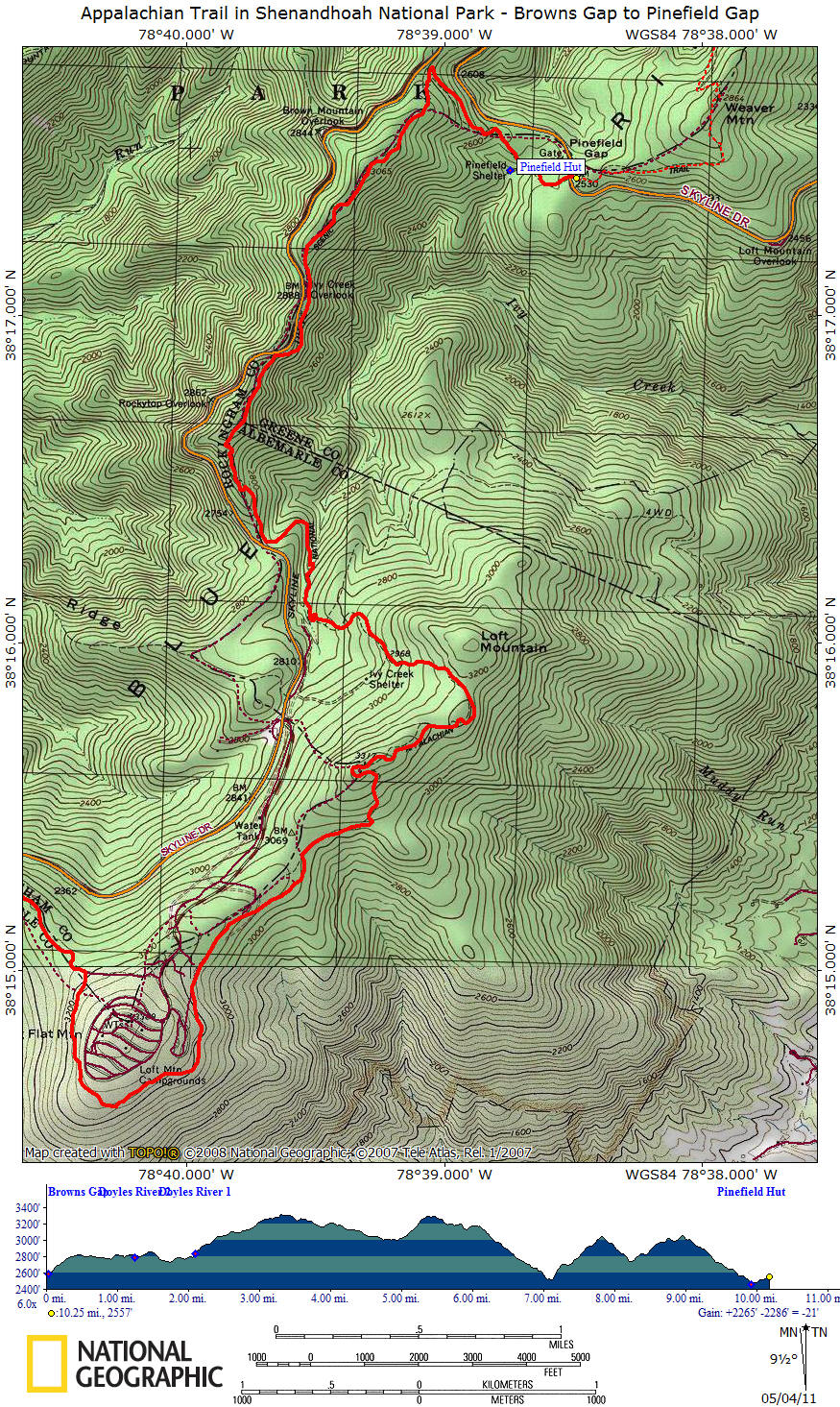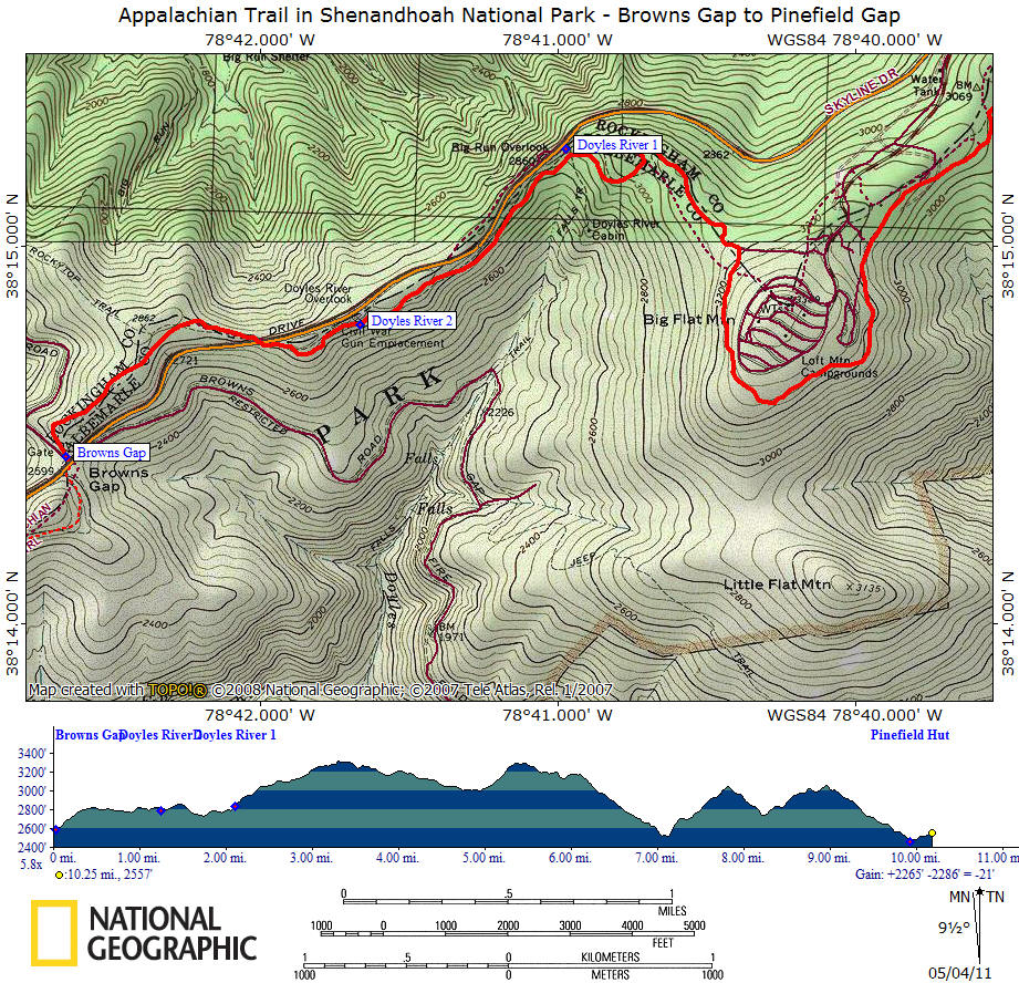 AT in Shenandoah National Park Browns Gap to Pinefield Gap Loft Mountain, Doyles River