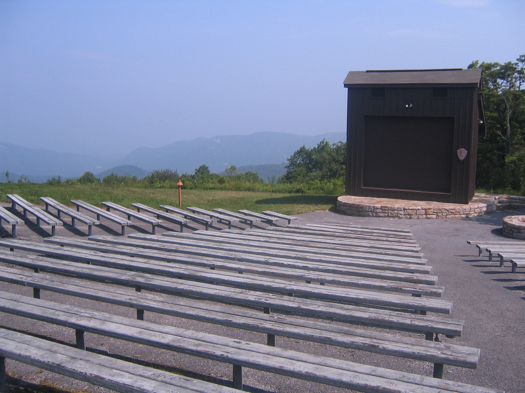 At 3.0 miles reach a side trail on the left that leads 0.3 miles to the Loft Mountain Amphitheatre. The AT now skirts around Loft Mountain Campground with access trails to the campground at 3.2 and 3.7 miles. At 4.3 miles a side trail heads left to the Camp Store (open mid May to October). Trail now ascends Loft Mountain.