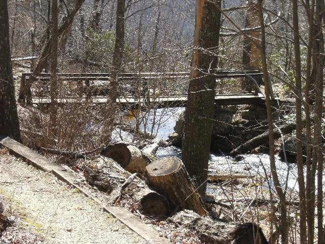 At 0.3 miles cross Fallingwater Creek on a footbridge. Your above the cascades and the trail will begin to descend, steeply at times. There are some steps plus a few benches through this section. Pass the base of the cascades and cross the creek on another bridge at 0.6 miles. The cascades aren't spectacular, but are certainly worth the hike. You can retrace your steps from here and head back to the parking area for a 1.2 mile hike. This would be 0.4 miles less than the loop. Do the loop.