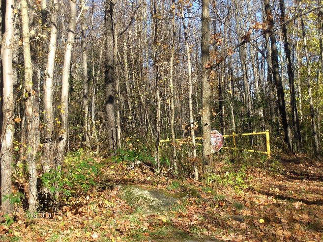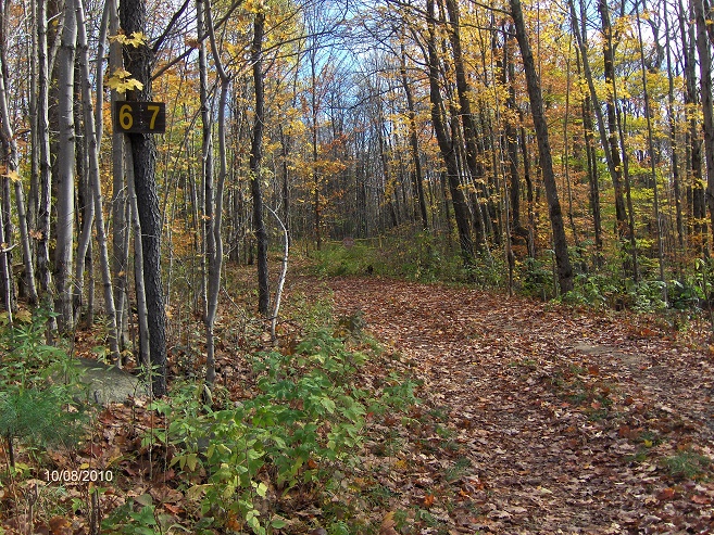 To find the start of the trail you must turn off on a side spur road for campsite #67 at the sharp turn 2.6 miles from the junction of Rock Dam Road and 1.1 miles north of the 'T' junction of Otter Brook Road. There is a gated barricade just past the campsite, which is for the old snowmobile trail. There is parking for a couple of cars at the campsite.