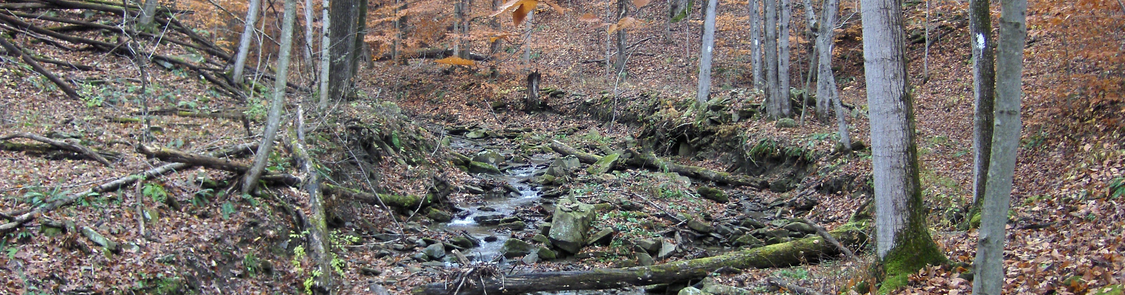 Trail in New York Bully Hill State Forest A pleasant walk along a stream